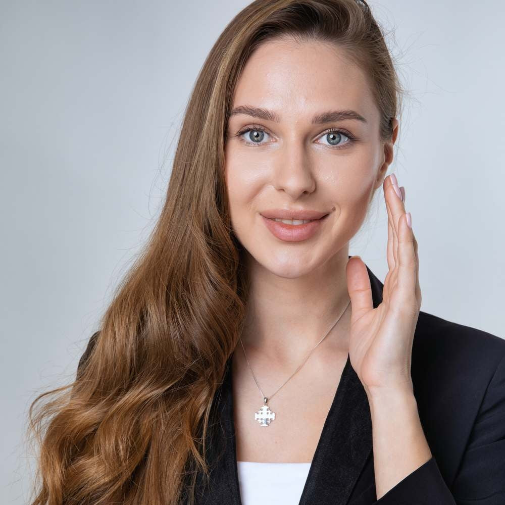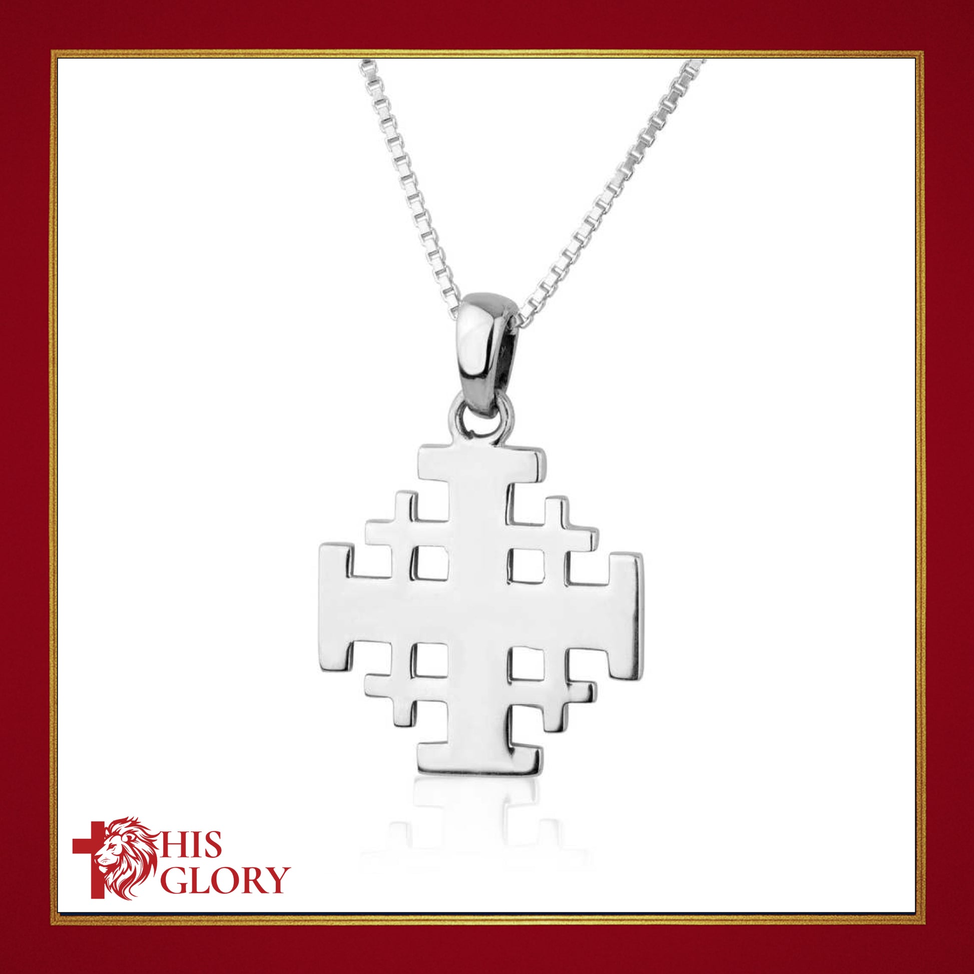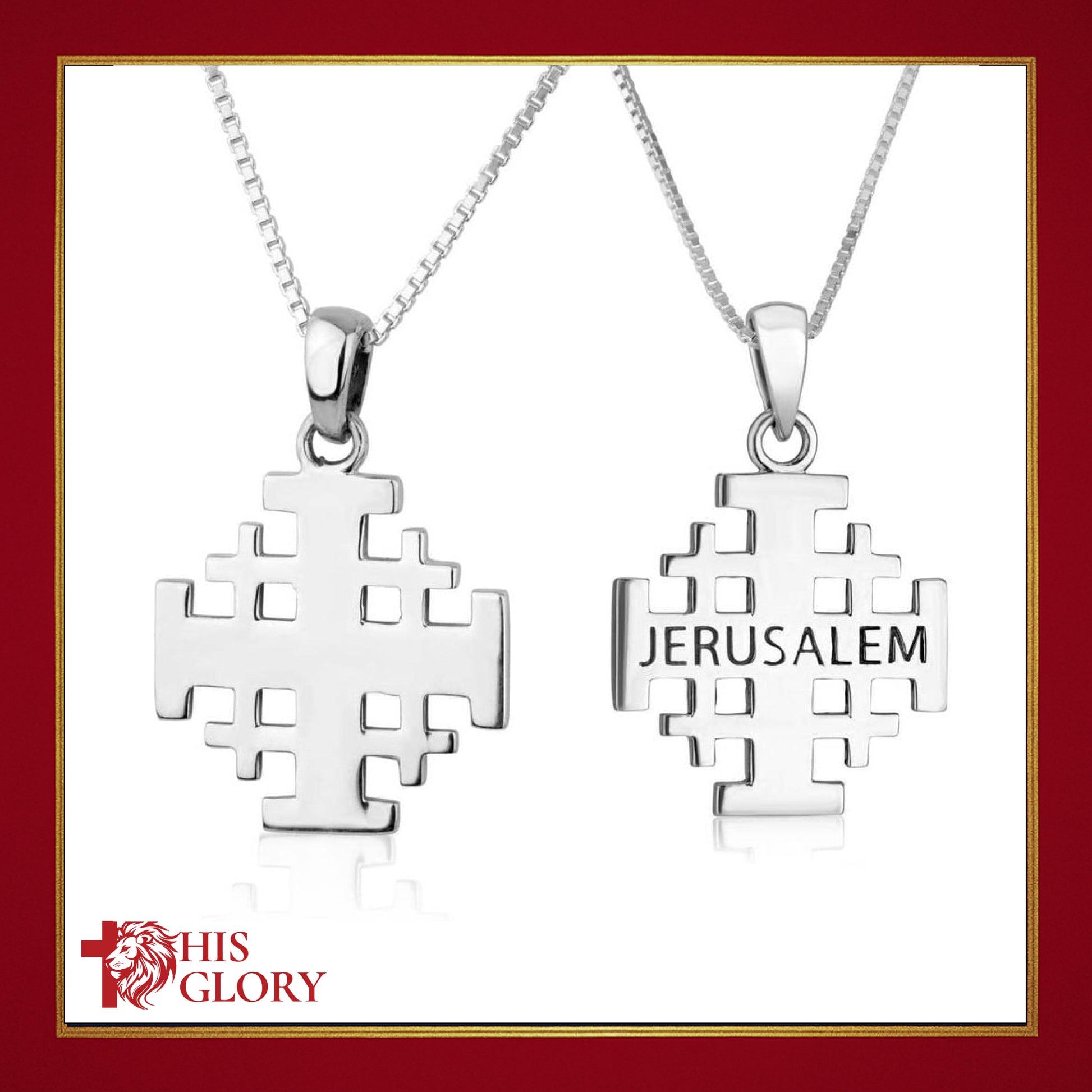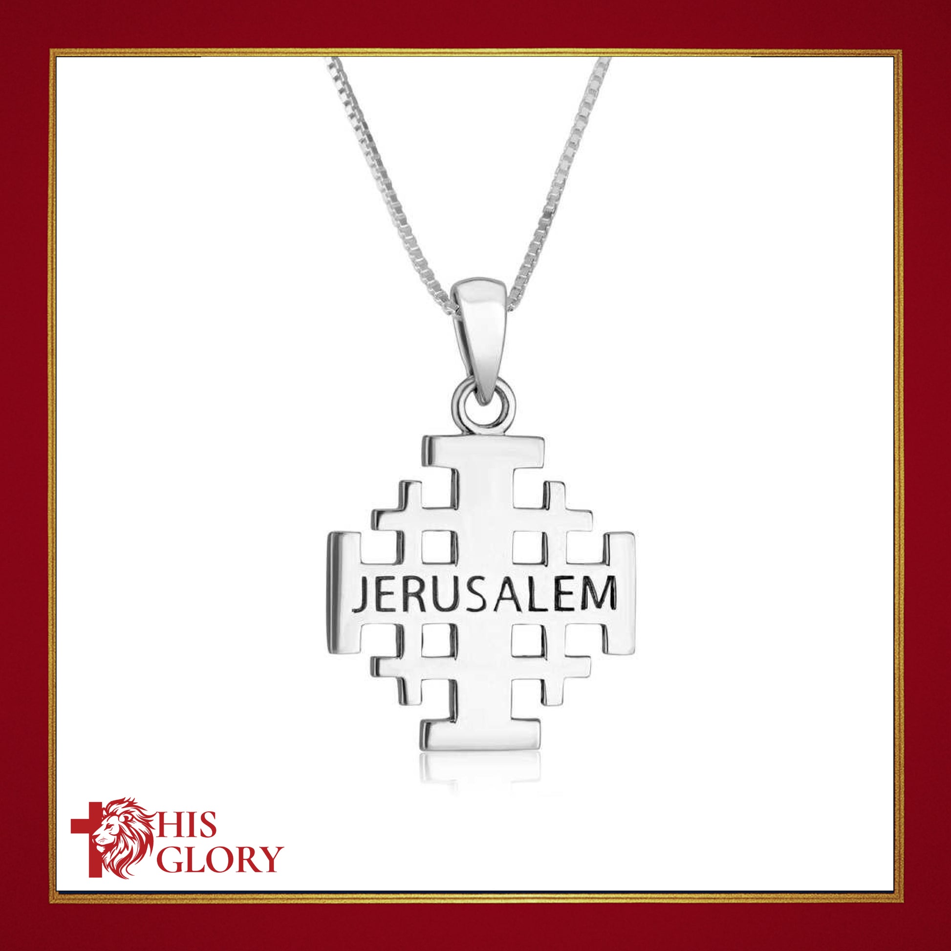 - Made of 925 sterling silver, this graceful Jerusalem Cross design has a smooth, shiny finish. The reverse is beautifully engraved with the name of the Holy City, "Jerusalem".