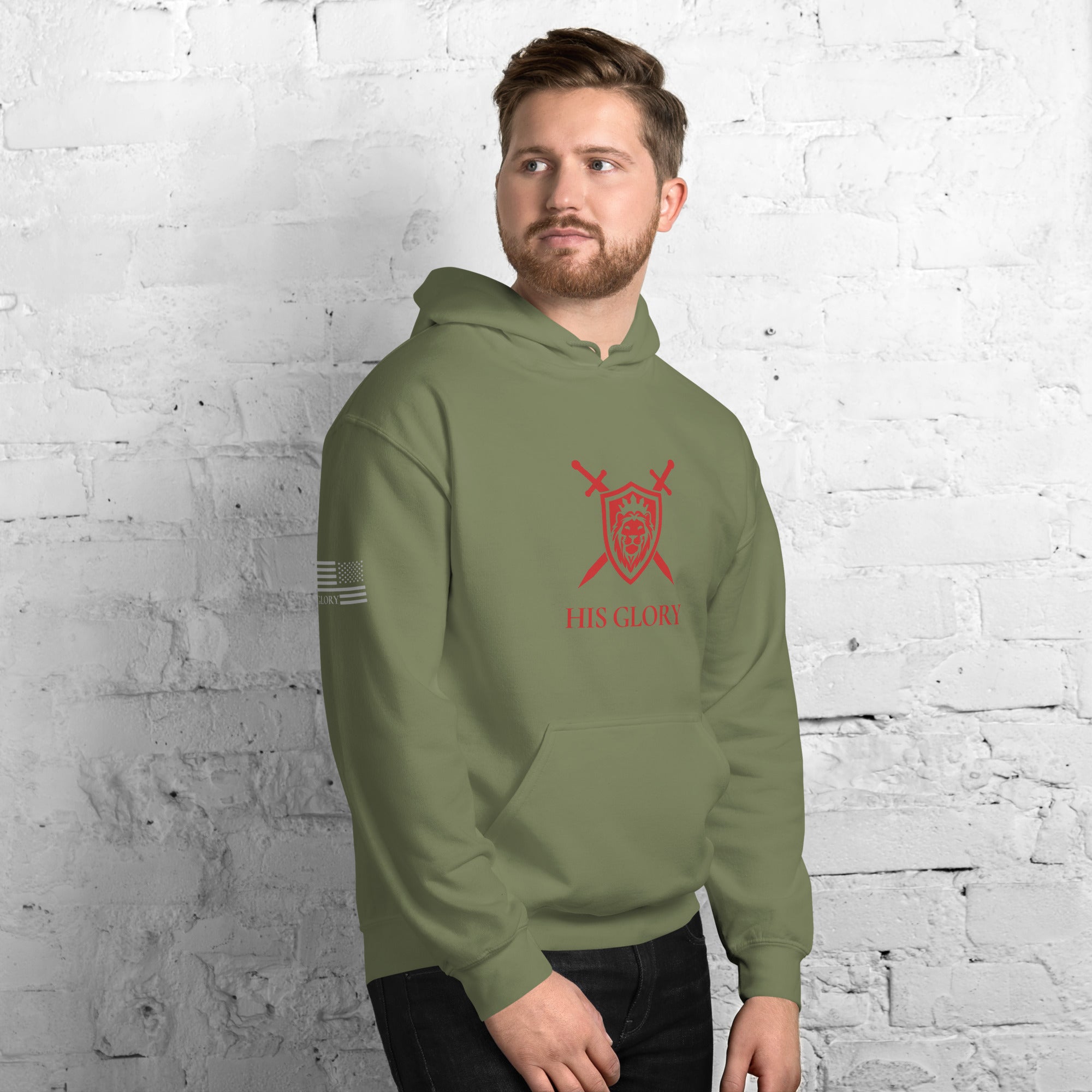 The His Glory "Lion Shield" Unisex Hoodie offers a perfect blend of comfort and symbolism. Designed with a durable, soft fabric, this hoodie provides warmth and a comfortable fit suitable for all-day wear. Its unisex cut ensures versatility, while the distinctive "Lion Shield" emblem reflects strength and protection, making it an ideal choice for those who value both style and meaningful design in their apparel.